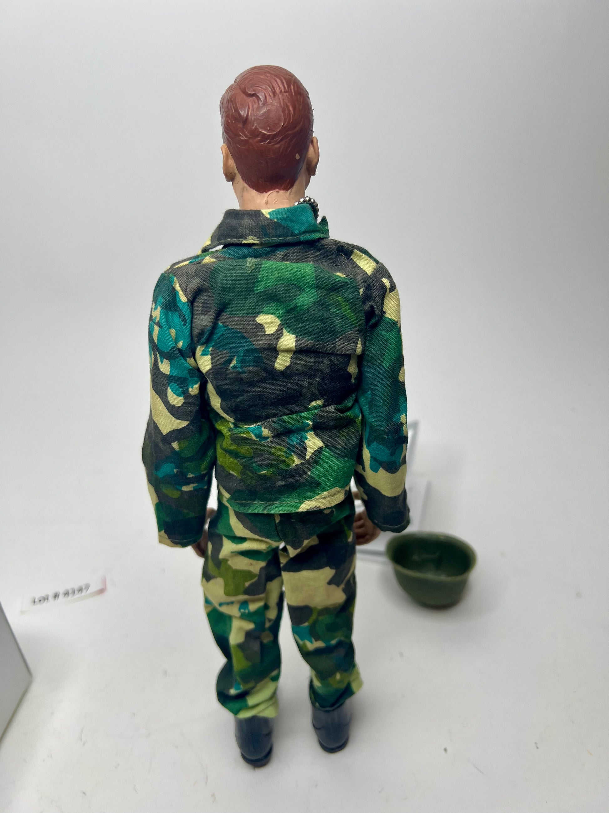 The following is a vintage buddy Charlie all American fighter Marine with custom box! The figure is in decent condition. C8+ -C9 see pictures! Comes with all Narine Camo clothing as shown and still has the buddy Charlie dog tag minus the Hong Kong paper label. Has G.I. Joe or G.I. Joe knock off boots as shown. Also has the netted helmet vs the smoothe one but no chin strap. Comes with a really decent looking repro box however a little different than our design but looks pretty good with the figure. Included copy of instrux . Free US shipping!
