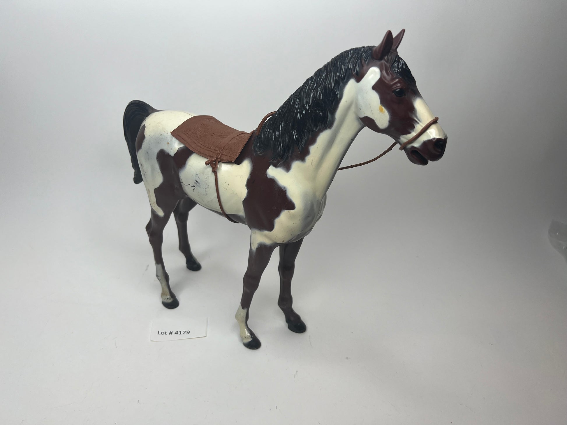 Storm Cloud Pinto, loose no box, C8+-C9, Has minimal melts under tack and scratches see pics. The set specifically comes with full Indian tack! 3/3 pieces including the hard to find hackamore. Perfect horse for Chief Cherokee, Geronimo, the Fighting Eagle or any Indian Custom! See pics of this beauty!